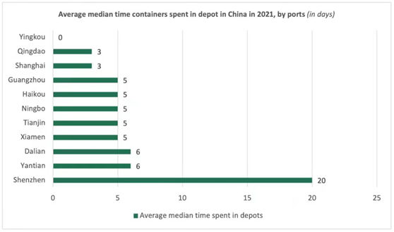 2021年中國(guó)港口集裝箱平均中轉(zhuǎn)時(shí)間