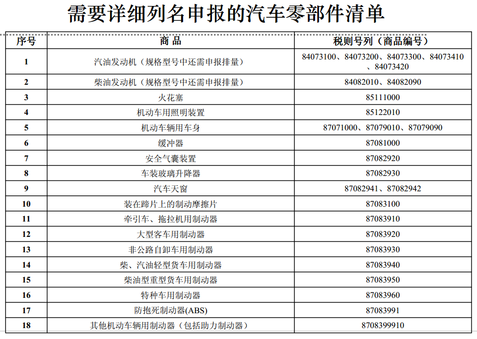 進 口 汽 車 配 件 申 報 信 息 和 注 意 要 點